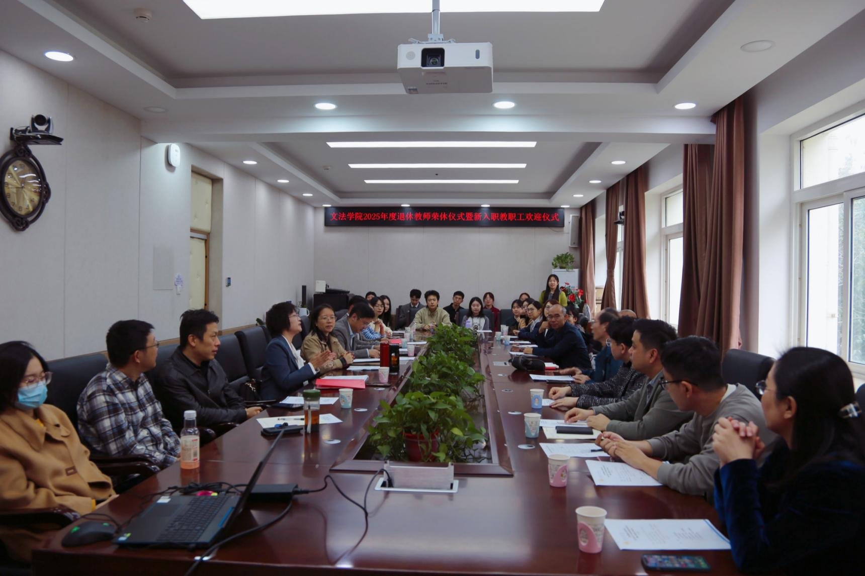 岁华流转,薪火相传。为表达对退休教师的崇高敬意与深切祝福,欢迎新教工入职古天乐代言太阳集团138,学院分工会于2025年10月10日在文法楼210会议室举办2025年度退休教师荣休仪式暨新入职教职工欢迎仪式。学院党委书记赵宝永,党委副书记、副院长、分工会主席李虹和相关系所负责人、教师代表及新入职教职工共同见证这场承载敬意与希望的温情仪式。仪式由学院工会副主席李怡主持。