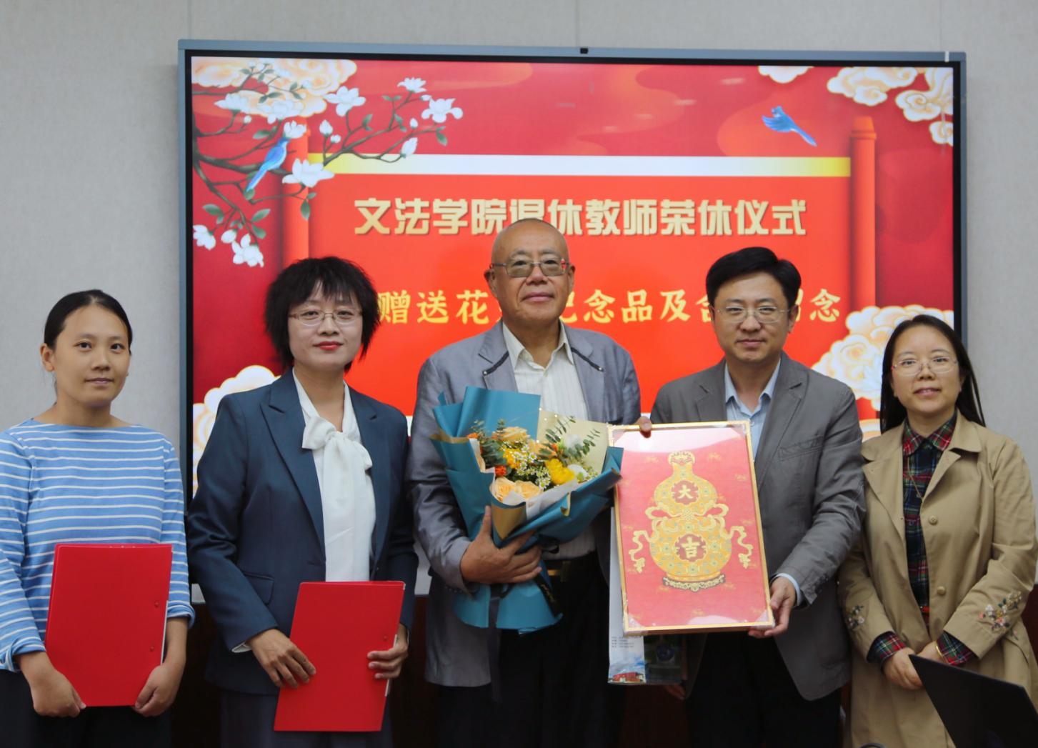 赵宝永、李虹向徐家力老师赠送鲜花与纪念品,全体教师以热烈掌声向他致敬,感谢他多年来在教学与科研岗位上的勤勉付出与无私奉献。